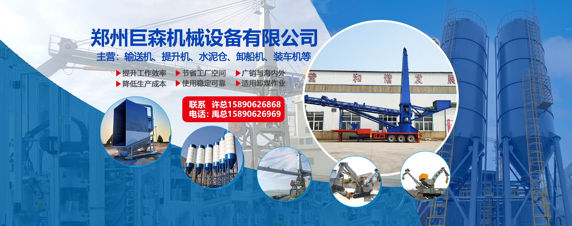 鄭州巨森機械設備有限公司是以卸船機創造、提升設備研發、水泥倉制作、風送斜槽供應為主的螺旋輸送設備生產廠家。公司主營輸送機、提升機、水泥倉、卸船機、裝車機等設備。